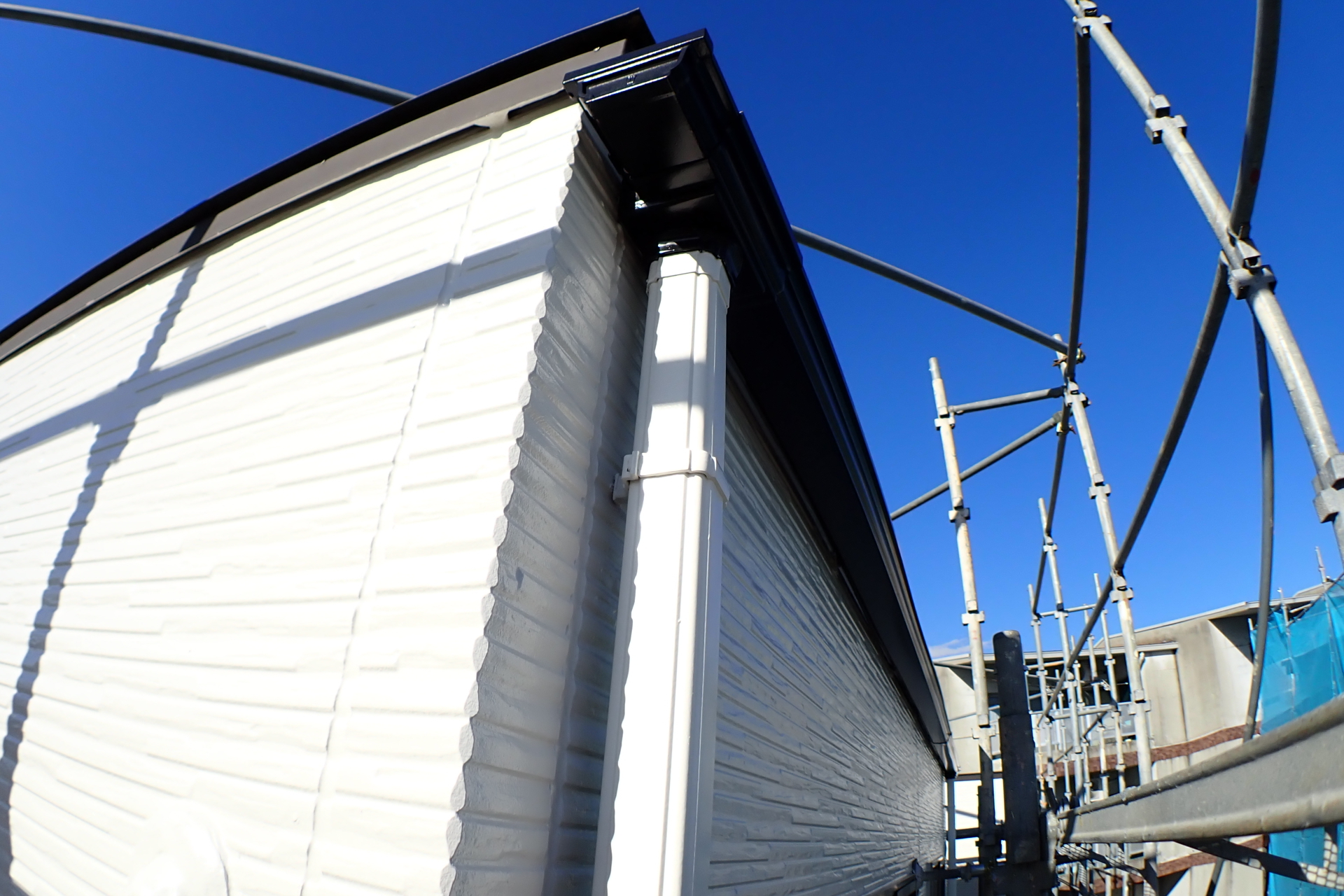 併せて屋根・破風鼻隠し・雨樋・軒裏・バルコニートップ・コーキングの打替えと今後の住宅長寿命のためのメンテナンスをさせていただきました。