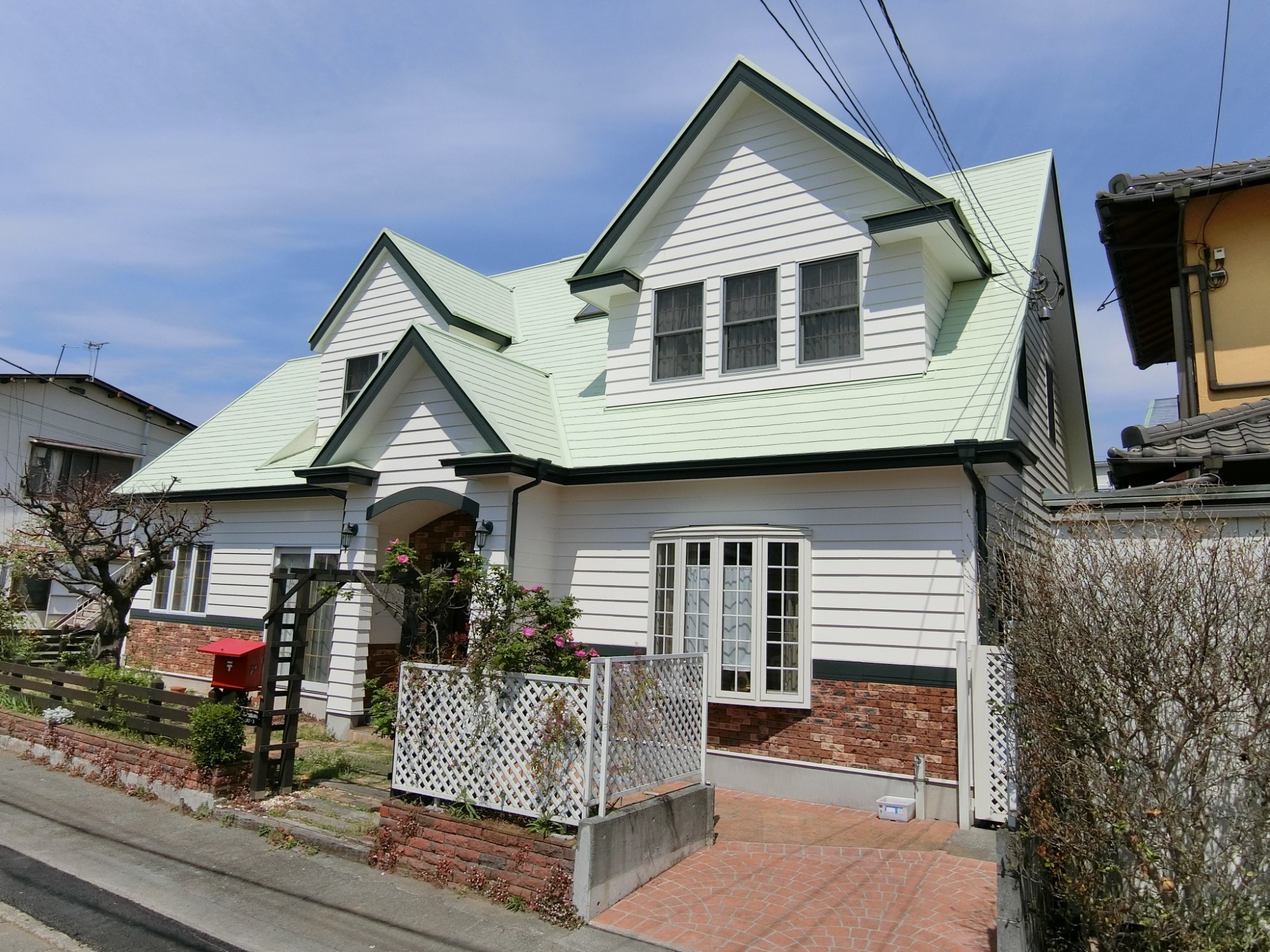 屋根は南面はカバー工法・その他屋根は塗装にて改修しました。外壁の多色サイディングは、色あせは進んでいたものの、色戻り試験の結果、まだクリヤー塗装可能と判断し日本ペイントのUVプロテクトクリヤーで施工いたしました。