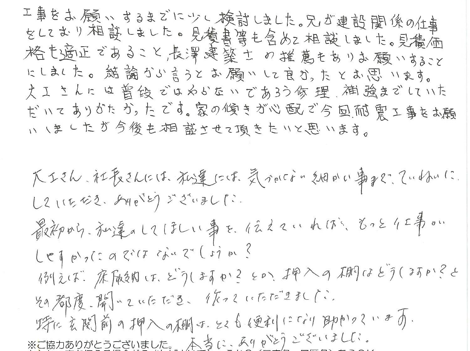 住宅を支える壁や柱、梁などは、住宅を長持ちさせたり、地震時等に家族の安全を守る上でとても重要です。点検・手入れをしないと、木造ではシロアリ被害や腐朽、鉄骨ではサビ(腐食)、鉄筋コンクリート造ではコンクリートのひび割れなどが進み、本来の役割を果たせなくなります。また、建築時期の古い住宅には、耐震性が不十分な住宅もあります。耐震診断による耐震性の確認に加え、点検による劣化の進行具合の確認を行い、早い段階で耐震補強を行うことが大切です。